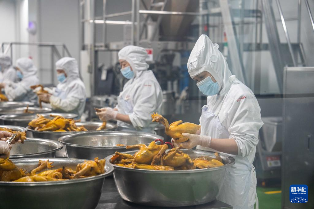 11月24日,在湖南宁乡经开区一家预制菜企业生产车间,工作人员在处理食材。