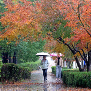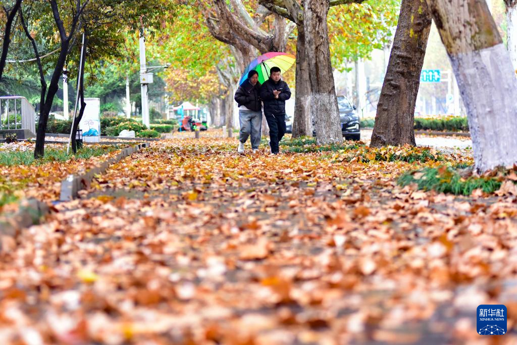 11月25日,在山东省枣庄市,市民撑伞在道路上行走。