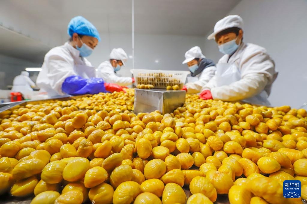 11月27日,工人在遵化市一家板栗加工厂栗仁加工车间工作。
