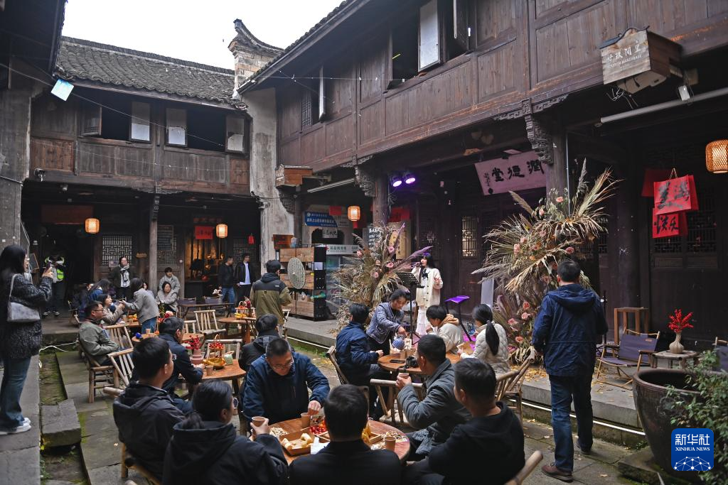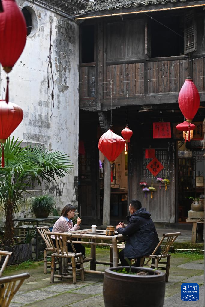 12月4日,在浙江省金华市浦江县虞宅乡新光村,游客在一家青年创客咖啡吧内休闲。