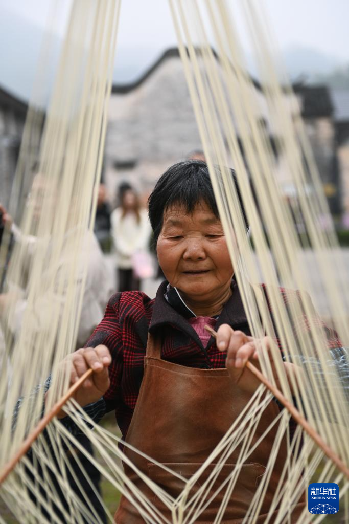 12月4日,在浙江省金华市浦江县虞宅乡新光村,村民在晾晒面条。