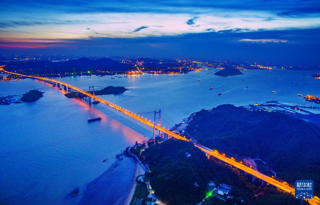 虎门大桥夜景(2015年6月3日摄,无人机照片)。虎门大桥横跨珠江口狮子洋水道,连接广州市南沙区与东莞市虎门镇。