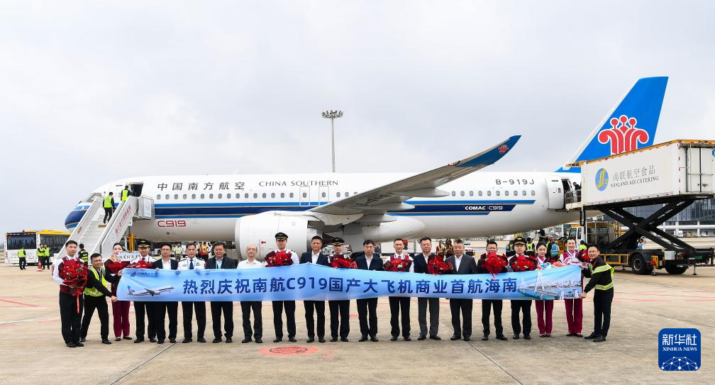 12月11日12时57分,由C919执飞的中国南航CZ6786航班从广州飞抵海口,国产大飞机C919在海南的商业飞行“首秀”顺利完成。据悉,这是中国南航首次使用C919飞机执行广州-海口“南航快线”航班,也是中国南航使用国产大飞机执飞的第4条航线,海口成为中国南航C919飞机继广州、上海虹桥、杭州、成都天府后执飞的第5个航点。