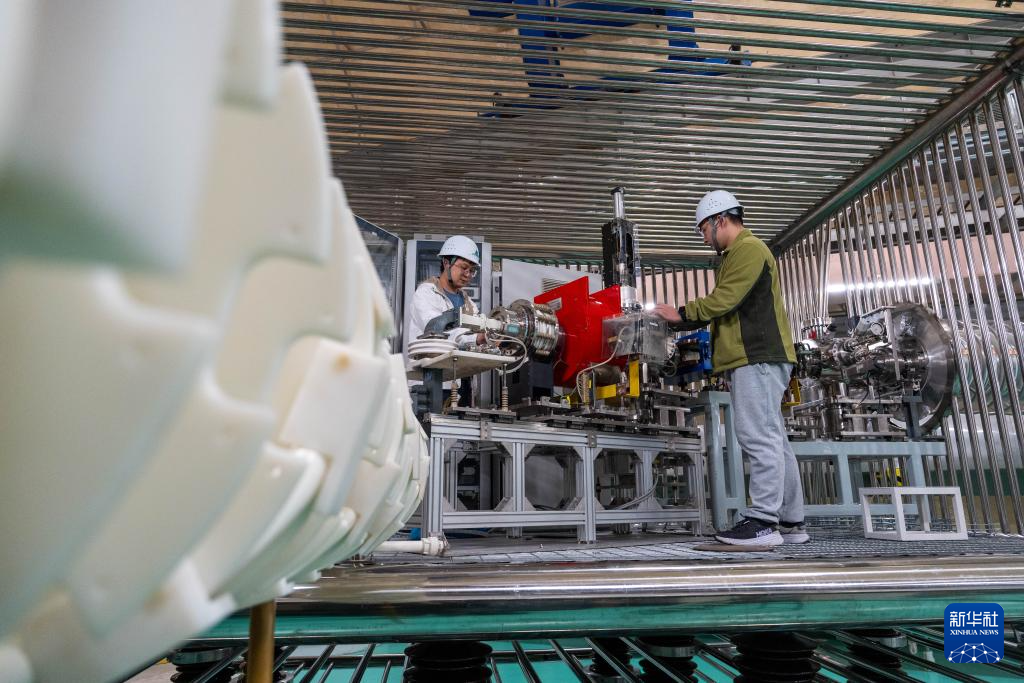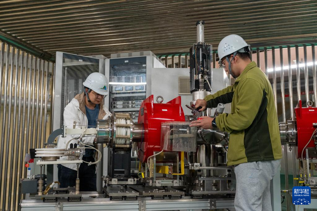 12月11日,锦屏大设施C1厅内运维人员在进行科研设备日常巡检。