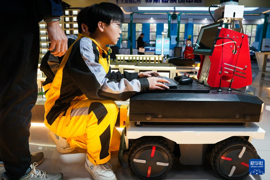 12月10日,在安徽万通技师学院车联网与智能交通展示中心,郑飘雪调试自动驾驶车辆。