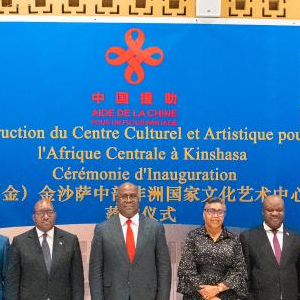 由中国政府援建的金沙萨中部非洲文化艺术中心14日举行落成典礼。刚果(金)总统齐塞克迪和总理图卢卡等出席,齐塞克迪为项目剪彩。