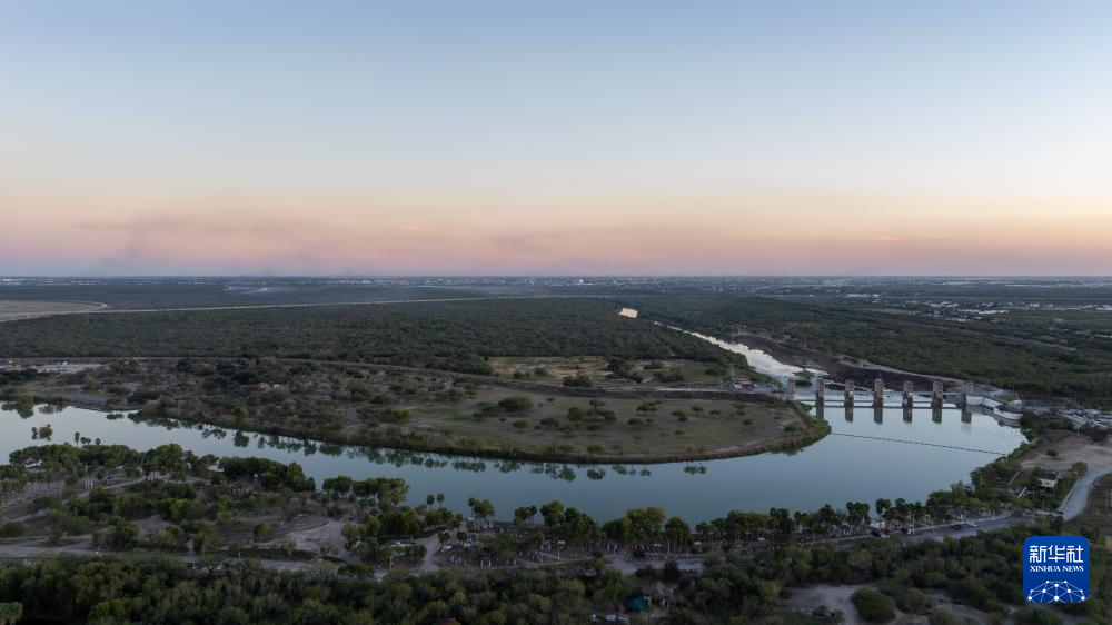这是12月11日在墨西哥边境城市雷诺萨拍摄的格兰德河墨美边境段(无人机照片)。