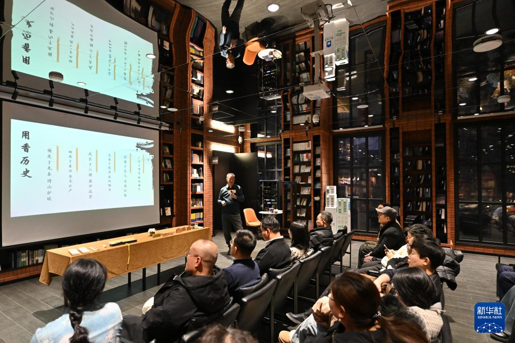 在天津意式风情区钟书阁书店,读者参加一场传统文化夜读体验活动(12月19日摄)。