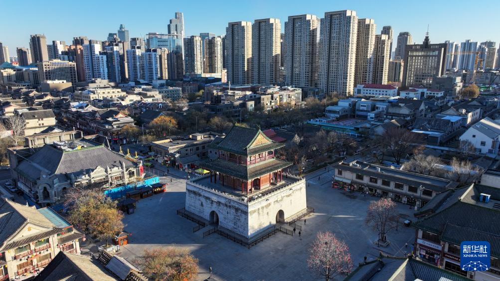 这是12月17日拍摄的天津鼓楼及老城厢地区(无人机照片)。
