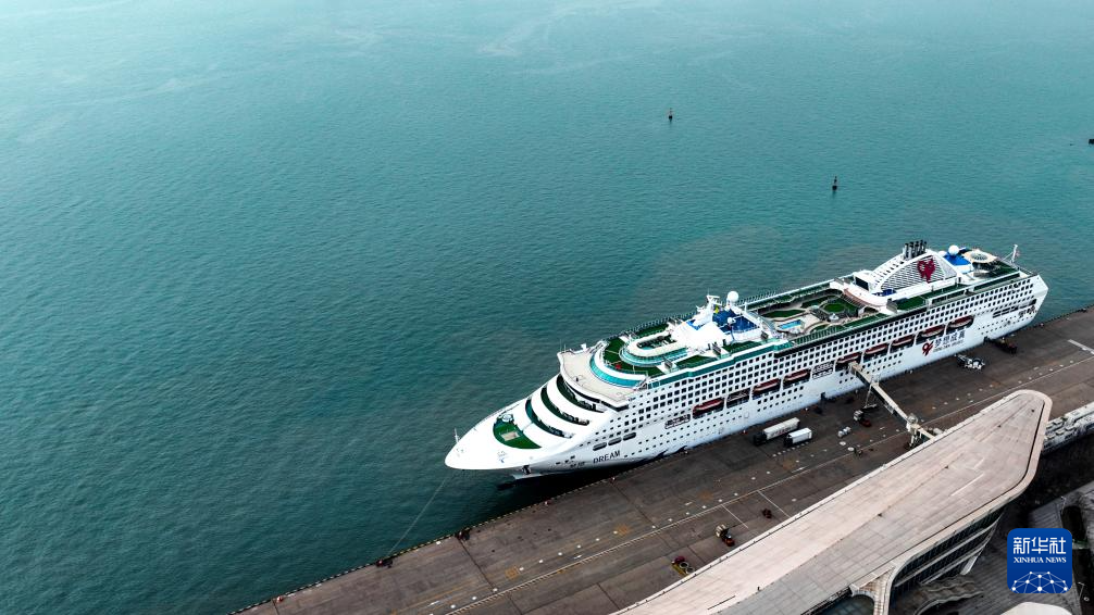 一艘国际邮轮停靠在天津国际邮轮母港(无人机照片,12月19日摄)。