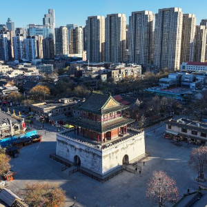 这是12月17日拍摄的天津鼓楼(无人机照片)。