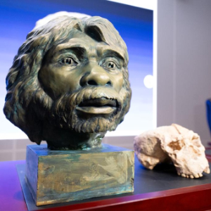 12月26日拍摄的“郧县人”1号头骨化石科学相貌复原头像。