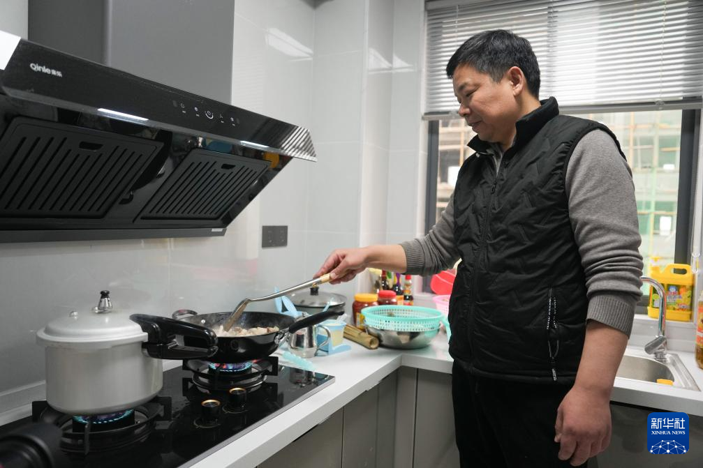12月26日,马首富在“团洲新村”的新家内做饭。