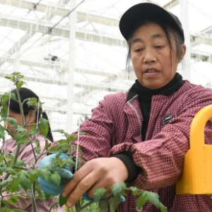 12月29日,在陕西省镇巴县长岭镇现代农业示范园,工作人员在大棚内管护作物。