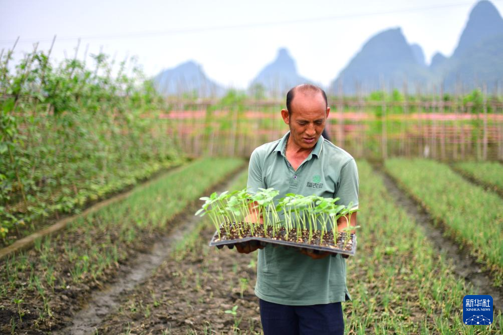 2024年5月15日,觉山村村民韦初满准备种植黄瓜。