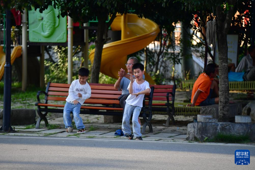 2024年5月23日,在觉山村小广场,两名孩子在玩耍。
