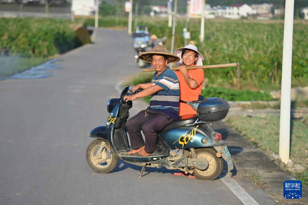 2024年8月6日,觉山村村民韦正玉(左)和爱人张勤在田边合影。