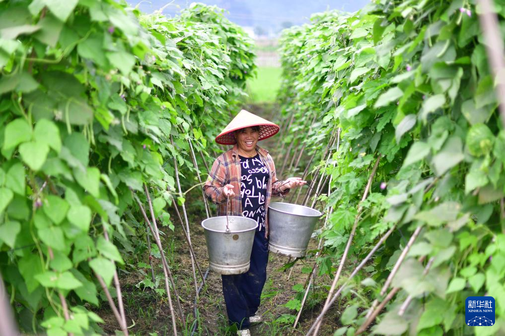 2024年5月25日,觉山村村民在整理豆角,准备供应市场。