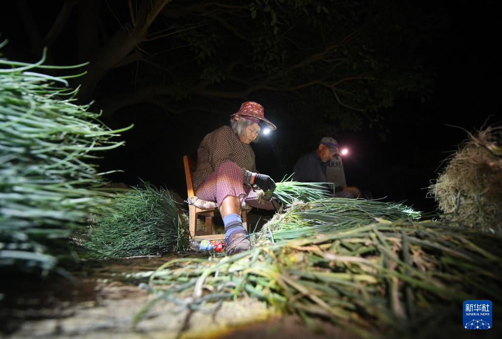 2024年10月27日清晨,觉山村村民在挑选香葱。