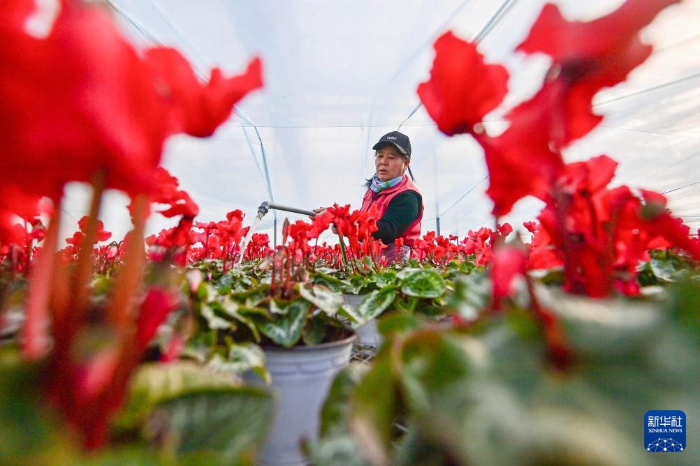 春节临近,各地花卉大棚里姹紫嫣红、花香四溢。花农加强对花卉的管护,确保春节期间花卉市场供应。