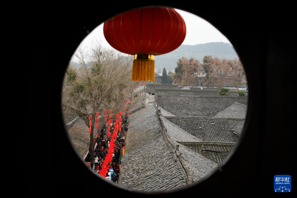 1月7日在阆中古城拍摄的“万人同品腊八粥”活动。