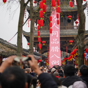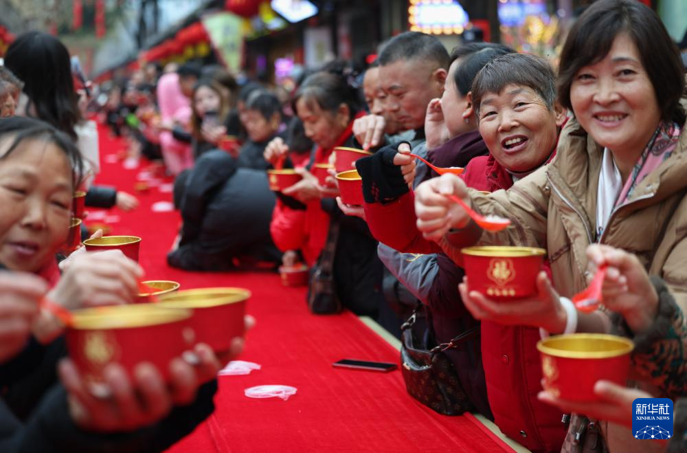 当日是腊月初八,四川南充阆中古城举行“万人同品腊八粥”活动,众多当地居民和游客围绕在阆中古城中天楼免费享用腊八粥。