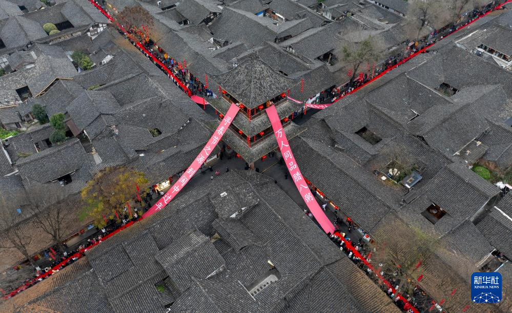 1月7日在阆中古城拍摄的“万人同品腊八粥”活动(无人机照片)。