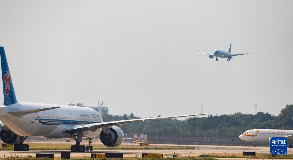1月10日,国产大飞机C919即将在三亚凤凰国际机场降落。