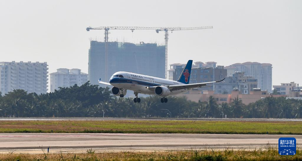 1月10日,国产大飞机C919在三亚凤凰国际机场平稳降落。