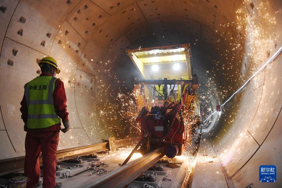 临近春节,在中铁五局承建的合肥新桥机场S1线正线轨道铺设施工现场,工人迎寒而上,抢抓建设进度,确保重点工程建设进展顺利。