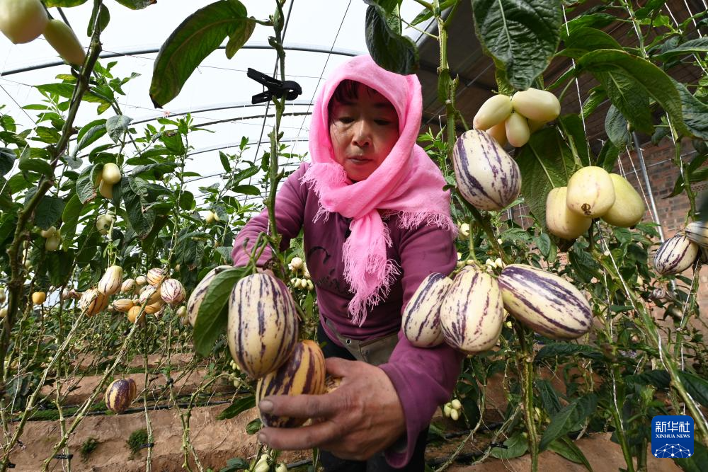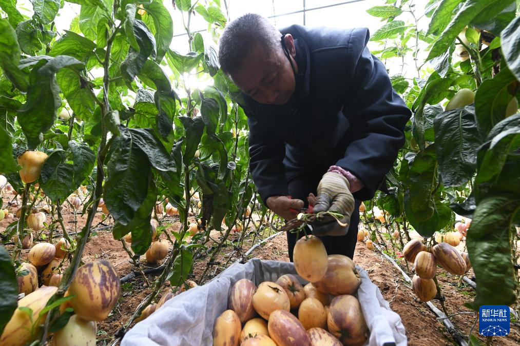 春节临近,在甘肃省武威市古浪县现代丝路寒旱农业示范基地的高标准日光温室内,当地农民错峰种植的人参果等农产品陆续成熟,大家忙着采摘、包装、发货,提前供应春节市场。
