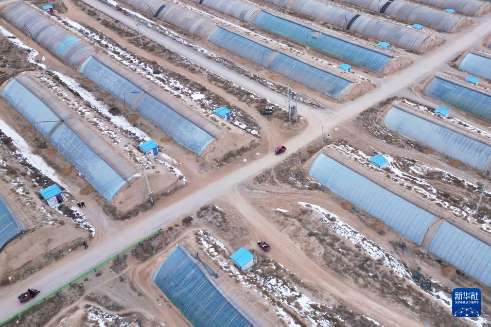 这是1月17日在古浪县现代丝路寒旱农业示范基地拍摄的部分高标准日光温室(无人机照片)。