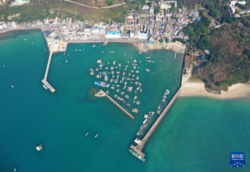 这是广西涠洲岛南湾老街附近的渔船码头(1月16日摄,无人机照片)。