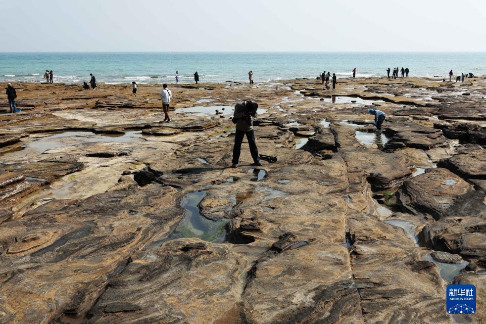 游客在广西涠洲岛滴水丹屏景区拍摄火山岩景观(1月7日摄)。
