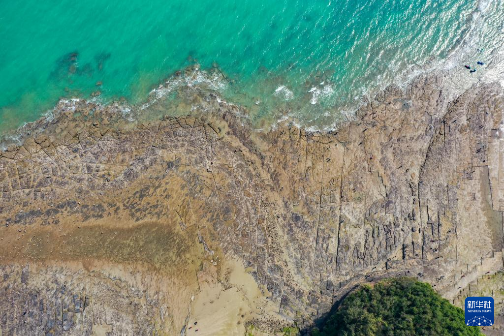 游客在广西涠洲岛的南湾鳄鱼山景区游玩(1月19日摄,无人机照片)。