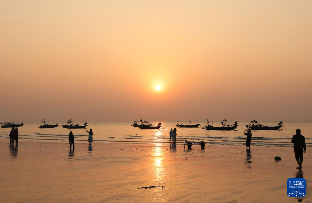 这是广西涠洲岛的石螺口海滩落日风光(1月5日摄)。