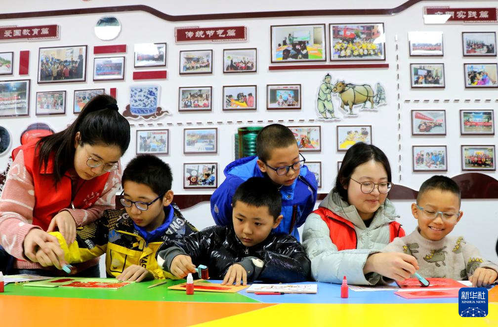 1月22日,在甘肃省平凉市静宁县博物馆开展的“拓印年画过小年”活动中,小朋友在志愿者的指导下拓印年画。