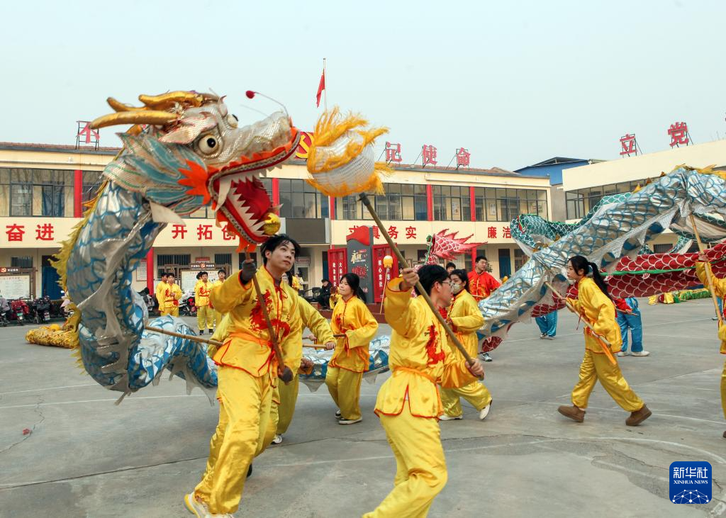 1月22日,在河南省焦作市博爱县鸿昌街道九街社区,居民们舞起龙灯欢度小年。