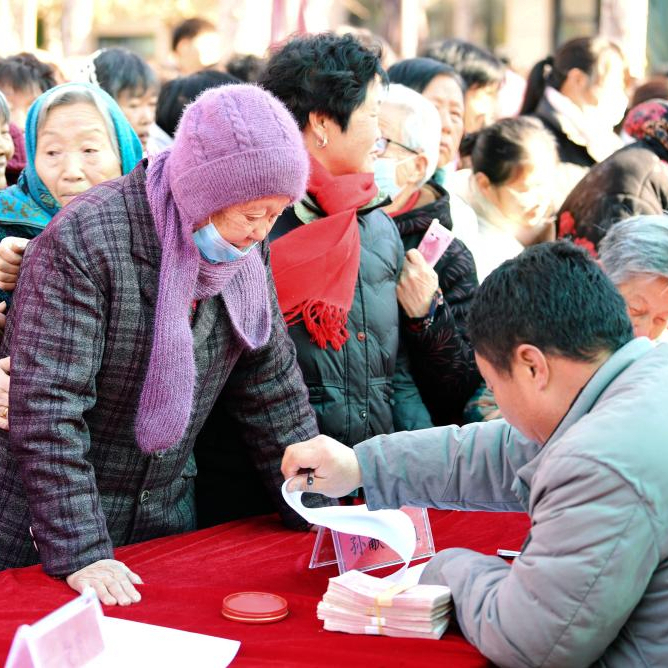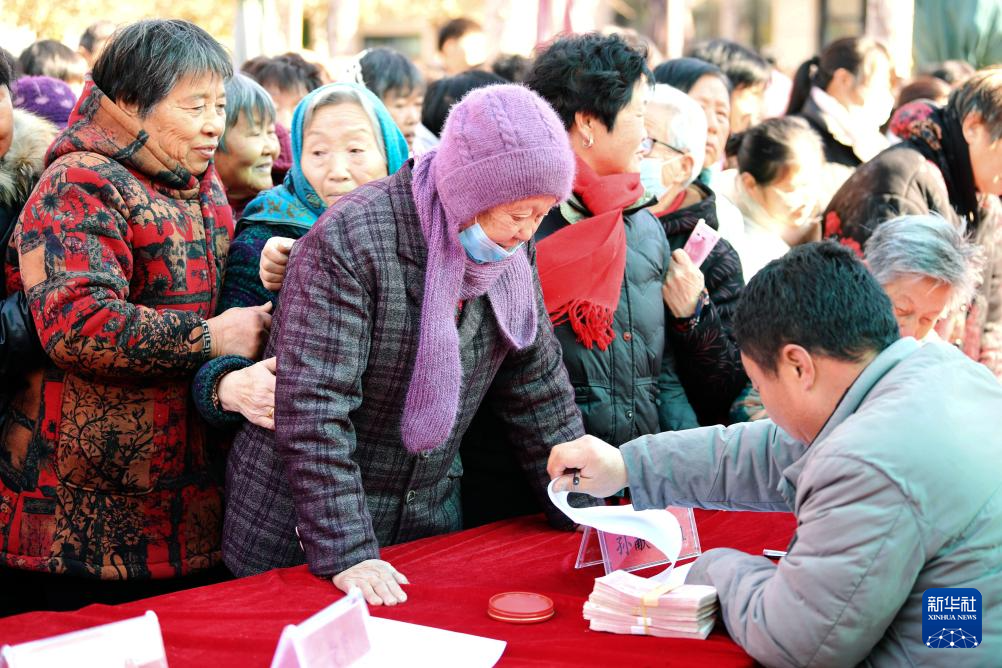 当日,河北省邯郸市广平县南阳堡镇后南阳堡村举行一年一度的分红大会,村民们共享集体经济发展壮大带来的红利,欢欢喜喜迎新年。