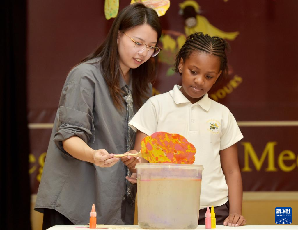 1月29日,在博茨瓦纳首都哈博罗内的丽海国际小学,当地学生体验制作中国漆扇。