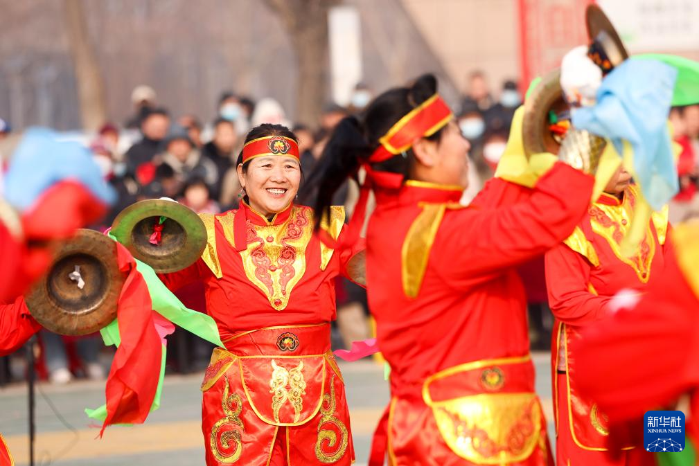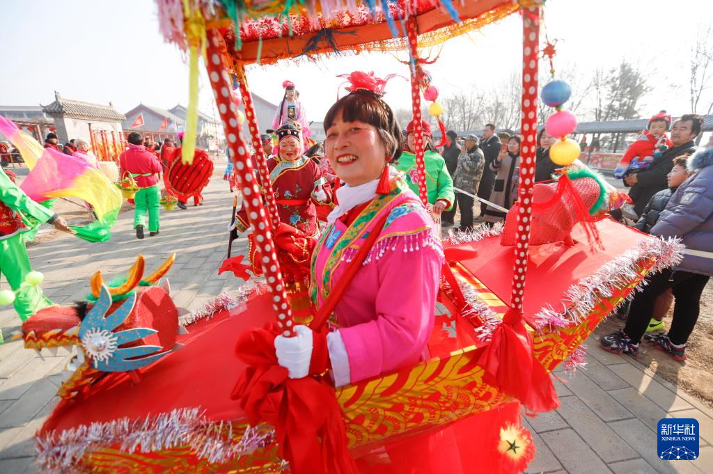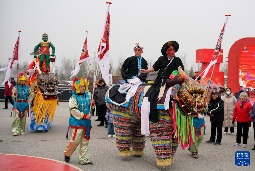 2月2日,民间艺人在河北省晋州市新世纪广场进行民俗表演。