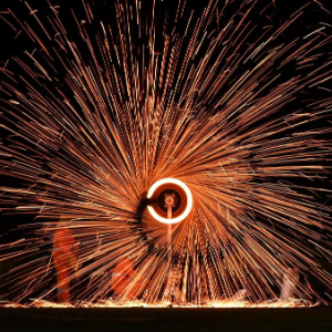 2月1日,民间艺人在浙江省金华市武义县花田美地景区表演打铁花。