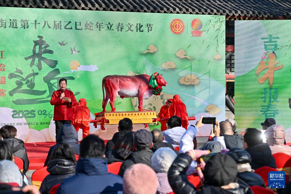 2月3日迎来立春节气,北京东城区建国门街道第十八届立春文化节在北京古观象台举行。文化节通过喊春、进城报春、鞭打春牛等表演活动,结合老字号产品展销、非遗体验等多彩互动摊位,让市民在民俗中体验传统文化的魅力,喜迎春天的到来。