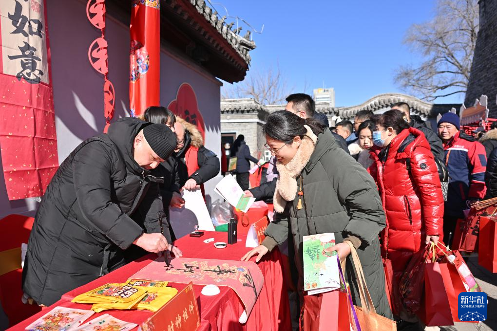 2月3日,书法爱好者在文化节上为市民手书吉祥话语。