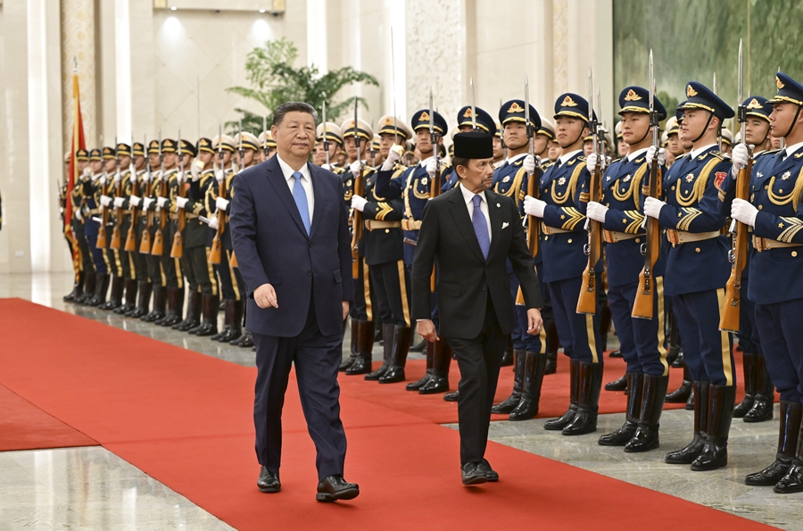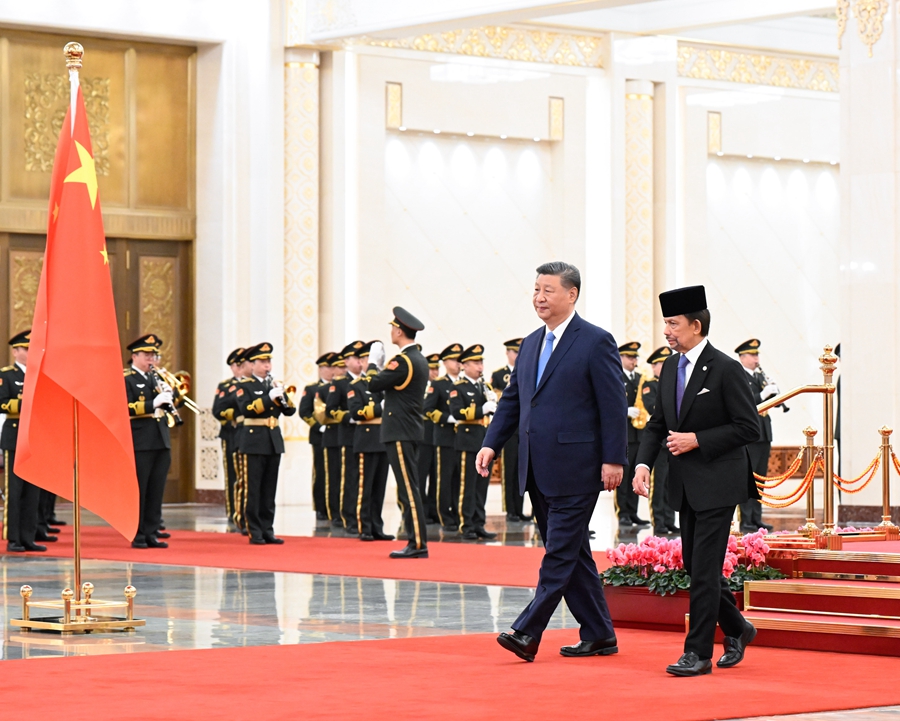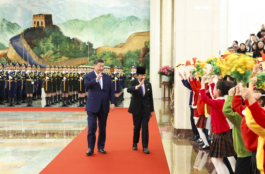 2月6日上午,国家主席习近平在北京人民大会堂同来华进行国事访问的文莱苏丹哈桑纳尔举行会谈。