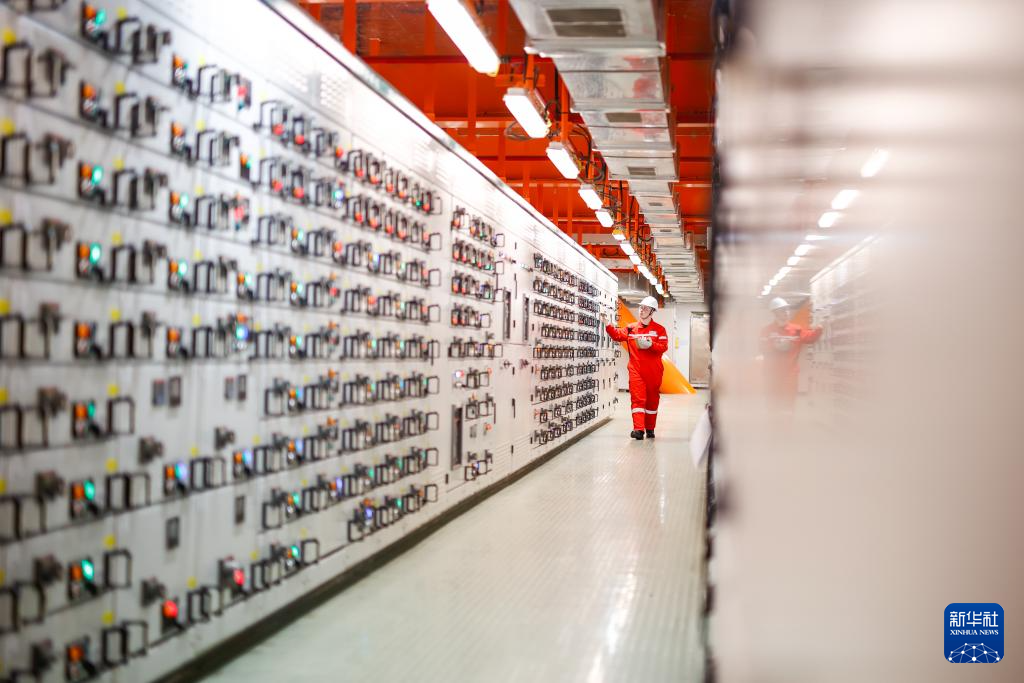 2月8日,工人在渤中26-6油田海上作业平台检查设备电力系统。