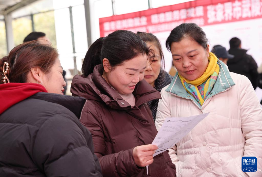 2月8日,在湖南省张家界市武陵源区中湖乡“春风行动暨就业援助月”专场招聘会现场,求职者了解招聘信息。