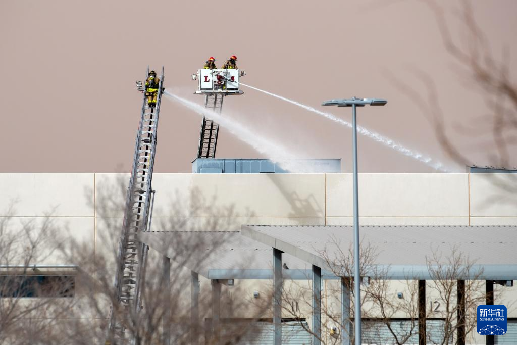 2月11日,消防员在美国得克萨斯州埃尔帕索国际机场附近的公交运营中心灭火。