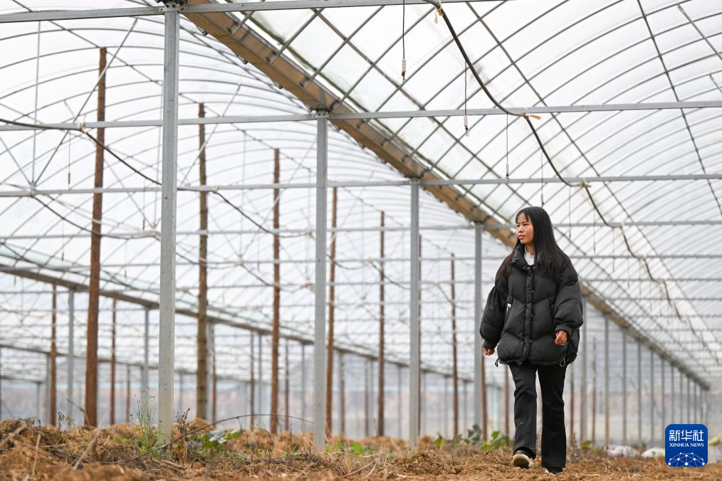 在湖北省赤壁市中伙铺镇安丰村,田淑娴在大棚内准备春耕事宜(2025年2月7日摄)。
