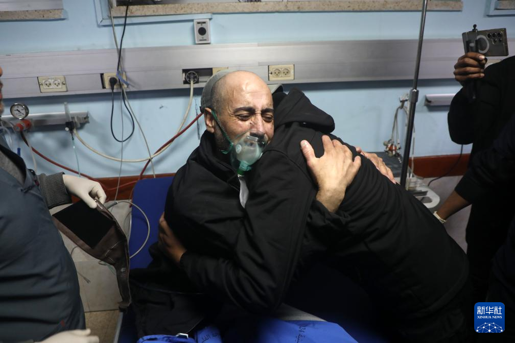 2月27日,巴勒斯坦获释人员到达加沙地带南部汗尤尼斯的一所医院。
